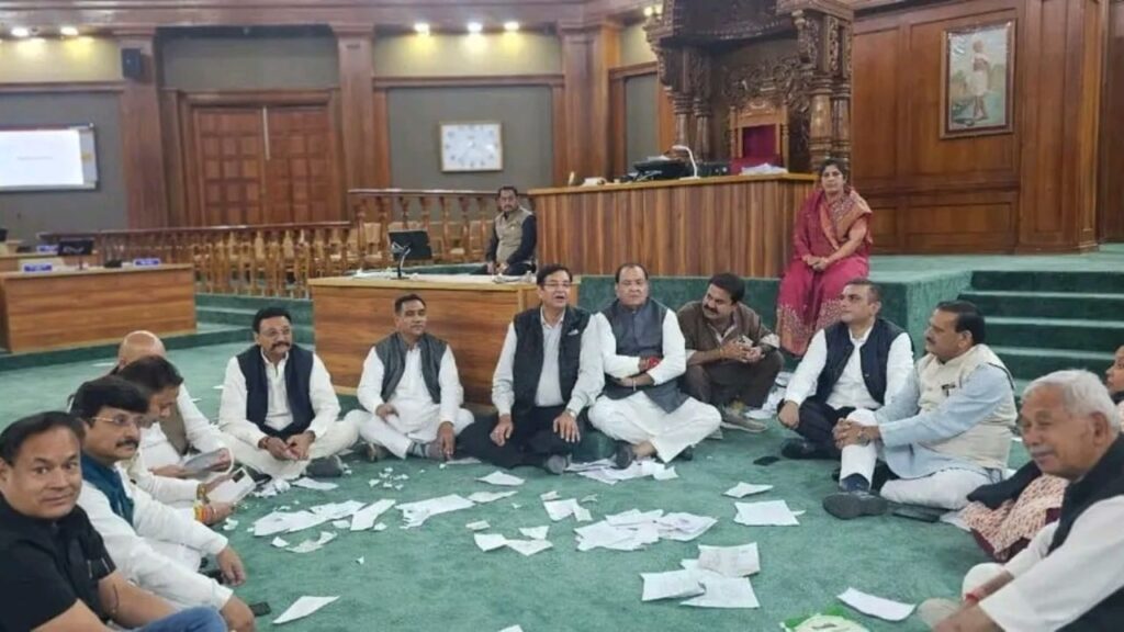 गैरसैंण। उत्तराखंड विधानसभा के मानसून सत्र के पहले दिन सदन की कार्यवाही हंगामेदार रही। कांग्रेस विधायकों ने कानून व्यवस्था और नैनीताल जिला पंचायत चुनाव को लेकर सदन के भीतर और बाहर जमकर हंगामा किया।