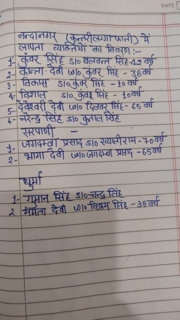 चमोली। चमोली जिले की नंदानगर तहसील के कुंतरी गांव में मंगलवार देर रात बादल फटने की घटना ने पूरे इलाके में तबाही मचा दी। कुंतरी लगाफाली वार्ड में 6 मकान पूरी तरह मलबे में तब्दील हो गए। स्थानीय लोगों ने बताया कि इस हादसे में 5 लोग लापता हैं, जबकि 2 लोगों को सुरक्षित बाहर निकाल लिया गया है।